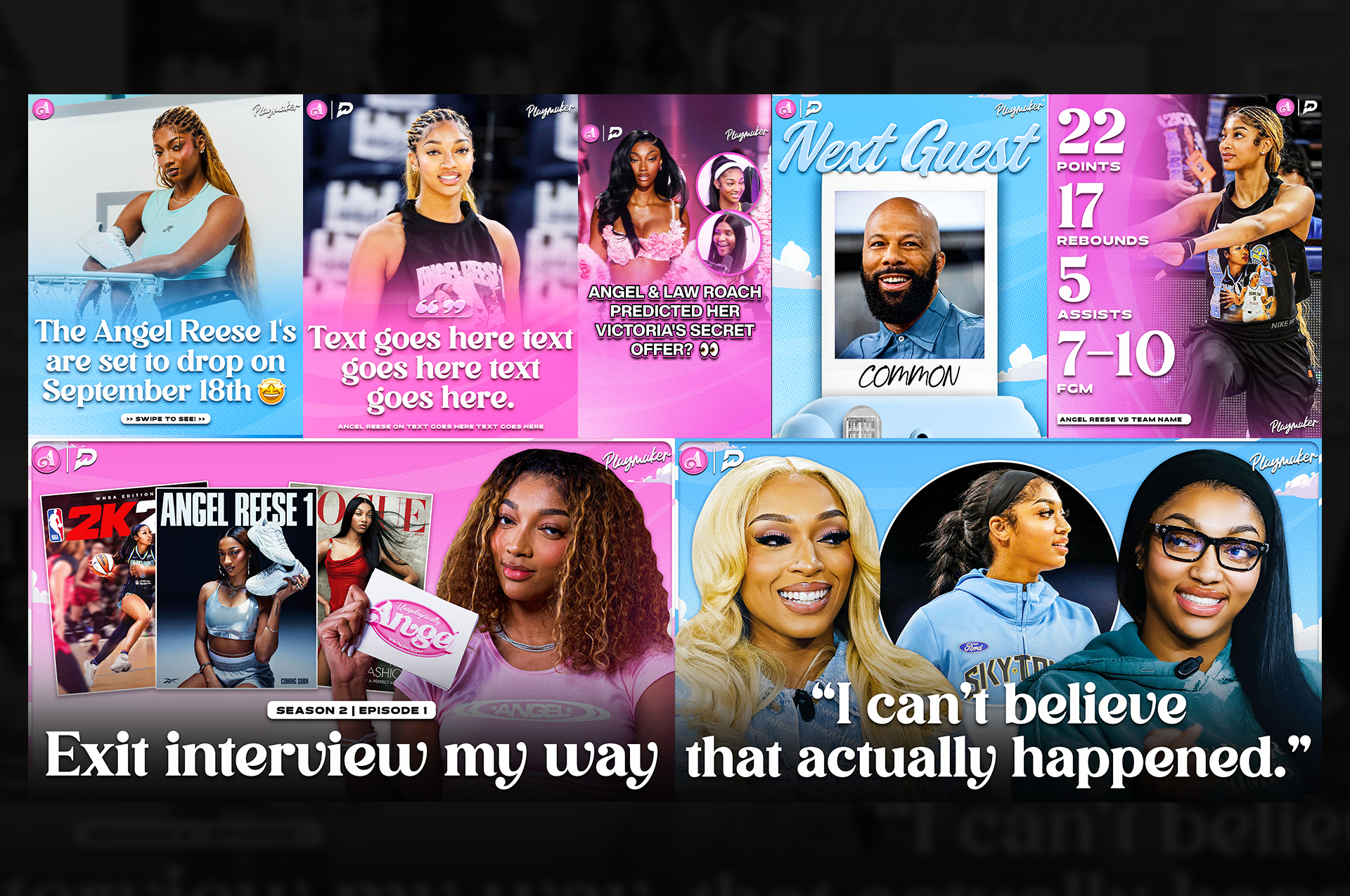 For Season 1, I created a visual identity that leaned into Angel’s personality and the vibrant energy she brings to her brand. The look used bright pinks, soft gradients, and clean layout choices to give the show a fun, recognizable tone. The goal was to build a look that felt true to Angel and stood out on social.